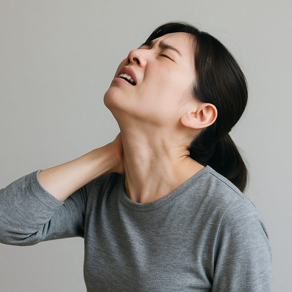首の痛みの背景には、筋肉だけでなく、骨や神経のトラブルが隠れていることもあります。