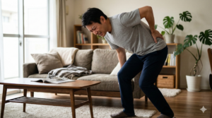 このようなケースでよく聞く原因の一つが、いわゆる「ぎっくり腰」です。ぎっくり腰は正式には急性腰痛症と呼ばれ、腰の筋肉や靭帯に急激な負担がかかることで起こると言われています。